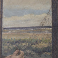 Step back in time, to a life that was so much simpler and admire this young boy deep in concentration while repairing his fishing net. In the distance, through the window, you see this wonderful seascape of rolling waves and beach fauna in the forefront.
